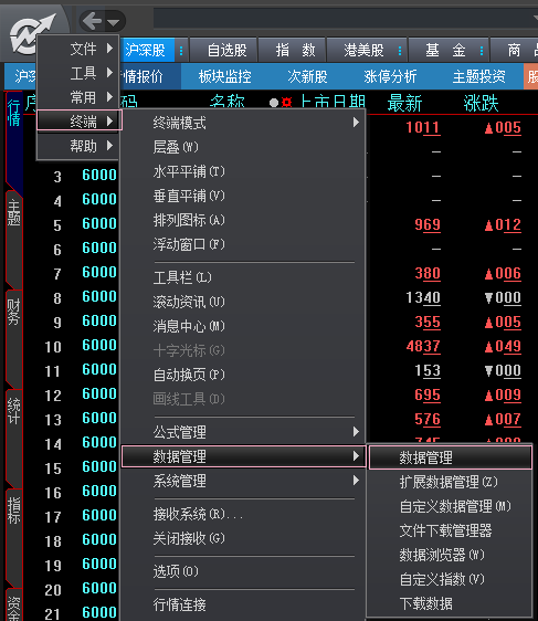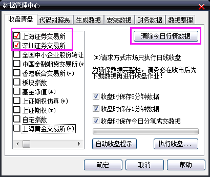 菜单-终端-数据管理-数据管理--勾选上海和深圳两个市场-点击清除今日行情数据--确定