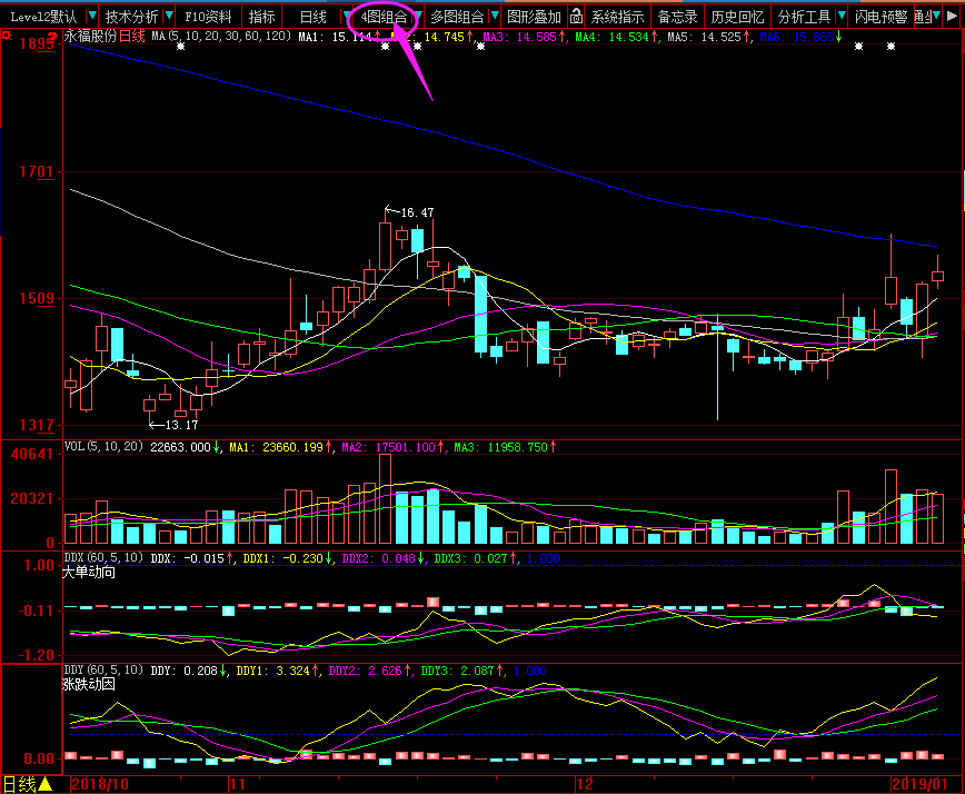 画面组合:改变图形分析窗口同时显示“副图指标”的数量,目前最多可同时显示12个副图。
